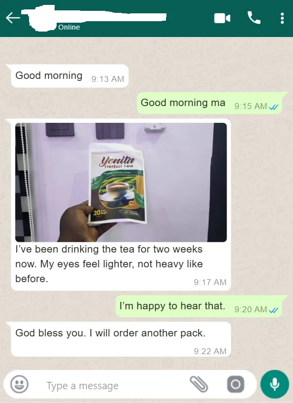 “I was so scared when my vision started getting blurry. My doctor said I was developing cataract. After using Yenita for just 6 days, the cloudiness reduced! Now after 3 weeks, my eyes are clear again. This product is real”